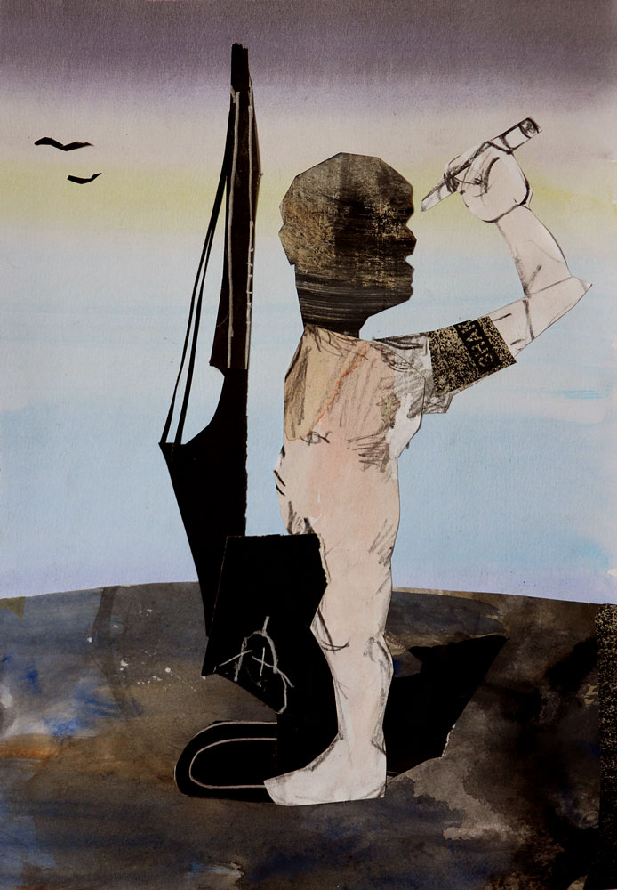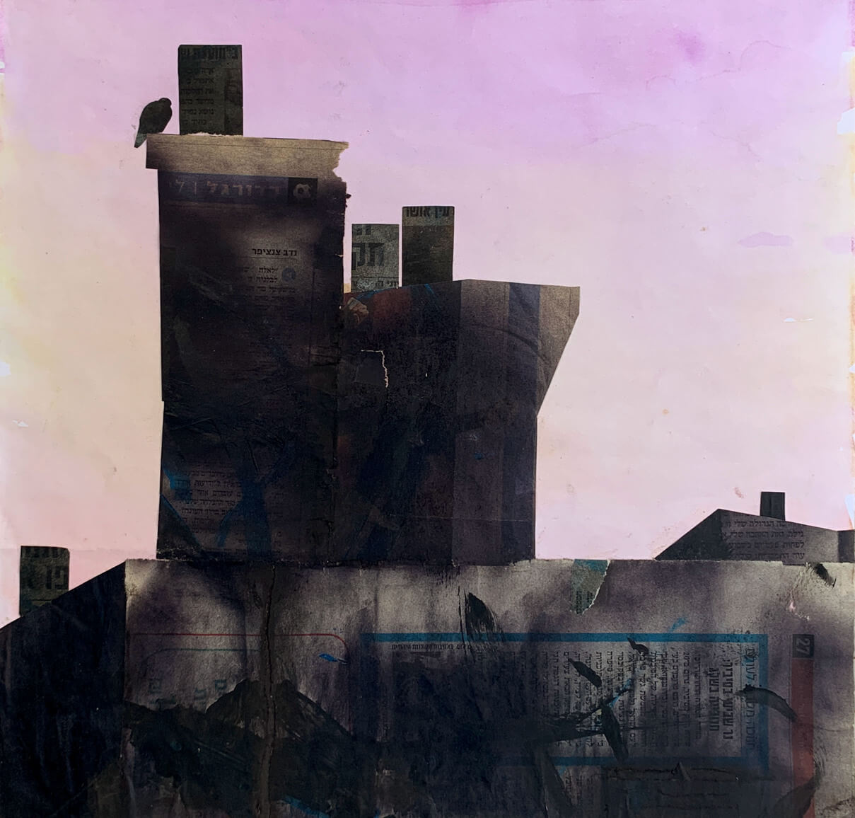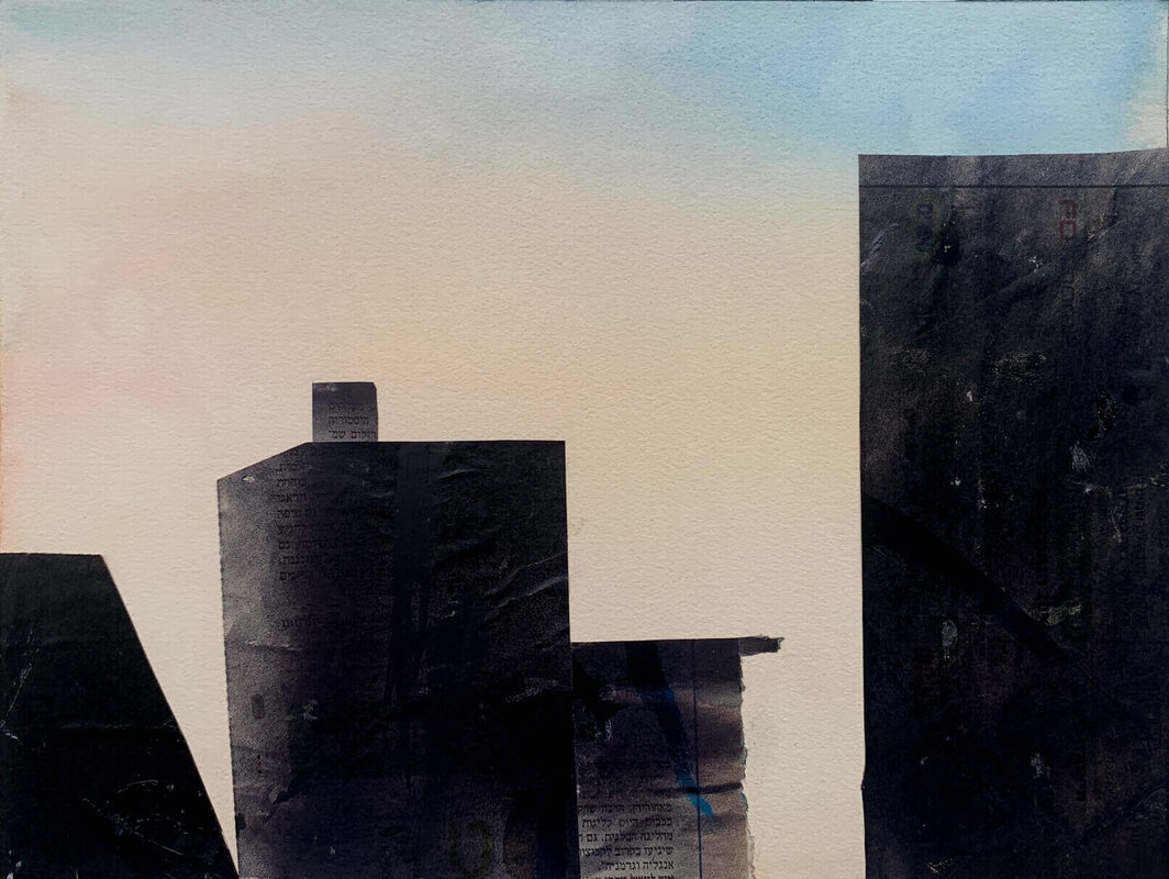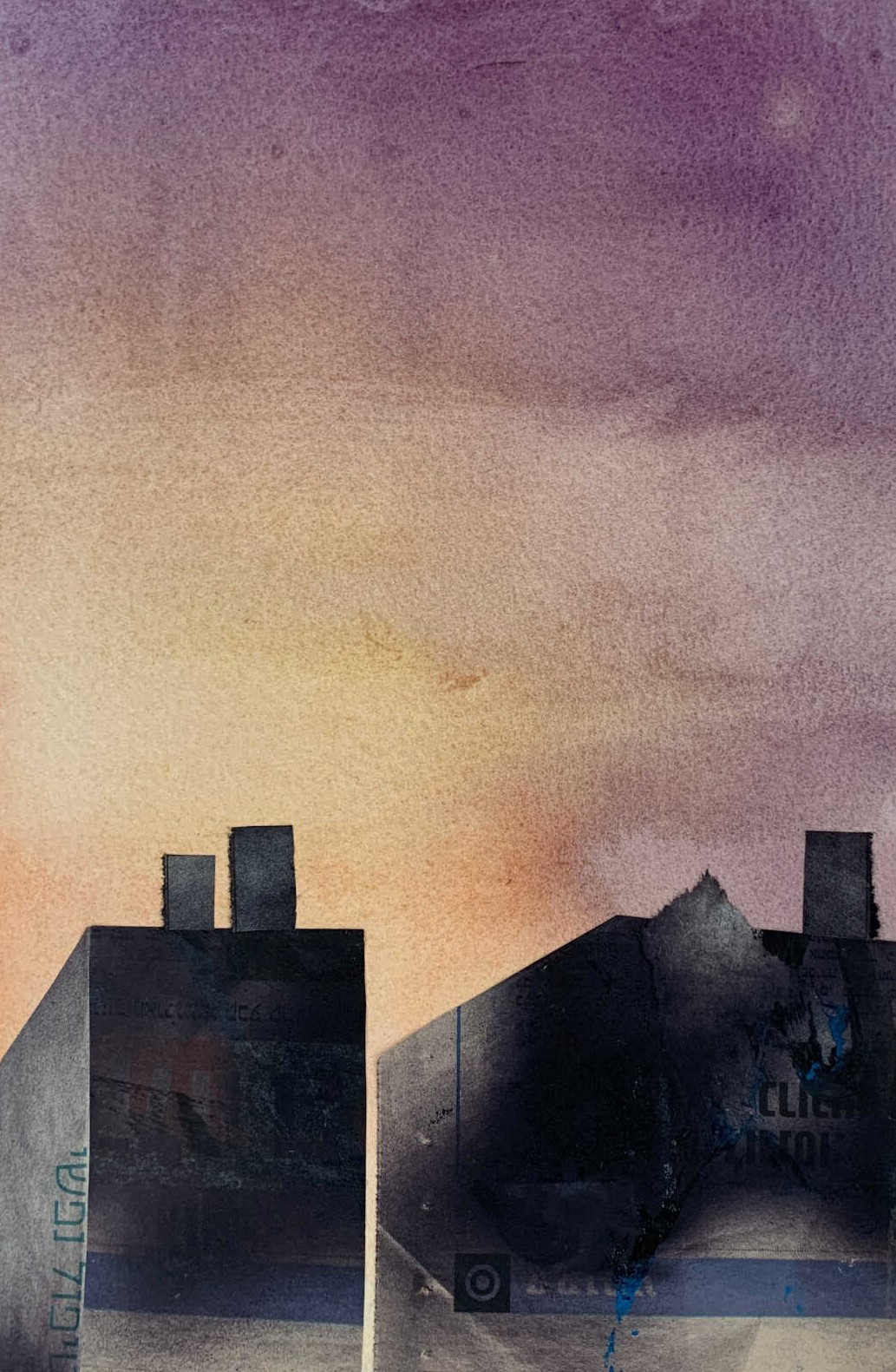 Sunsets and Dawns - collage series in watercolor and mixed media on newspaper.